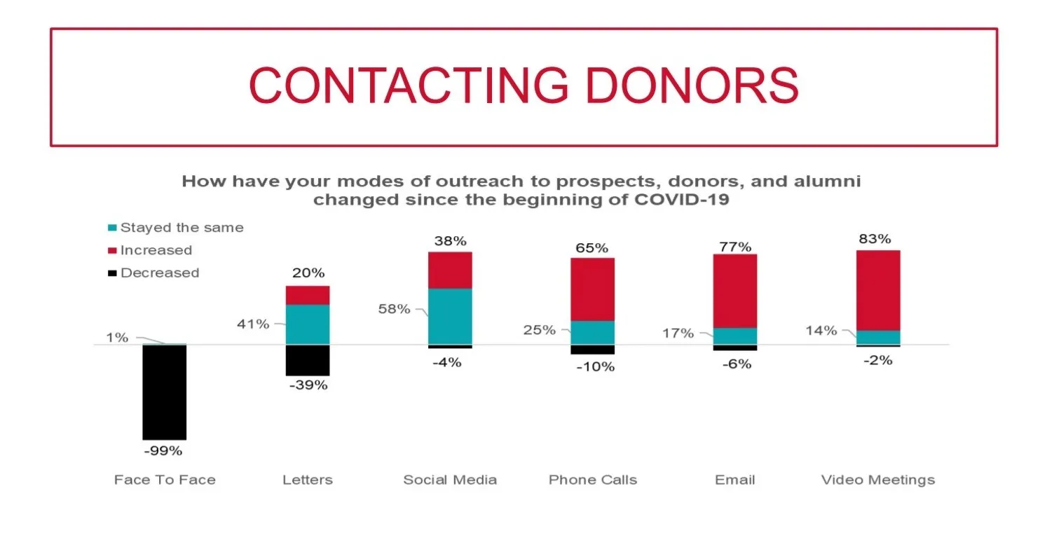 With the approach to fundraising changing, the outcomes will too. The economic impact of COVID-19 will leave a devastating impact on the total dollars raised but, as institutions continue to ramp up engagement & value-add services, relationships will grow stronger. While these loyal supporters may not be able to contribute big, institutions will see a rise in participation and the number of volunteers.