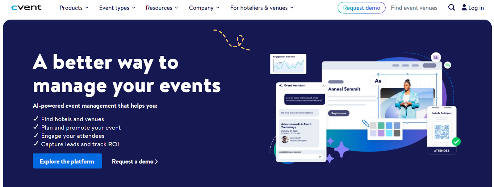 Cvent offers integrations with business CRMs like Salesforce and Microsoft Dynamics.