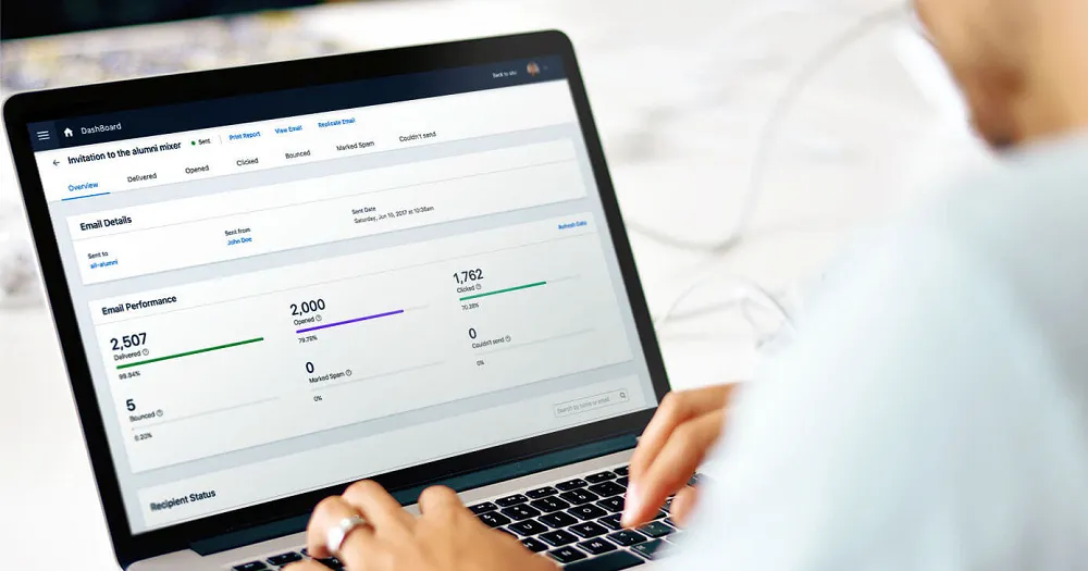 You can also go in and see every time someone opens or clicks your email. You can also see which email IDs bounced, if anyone marked emails as spam, etc. Imagine an alum opened your email about an upcoming event 15 times but hasn’t yet signed up for the event. Now with this information, you could talk to them and see if they need anything.