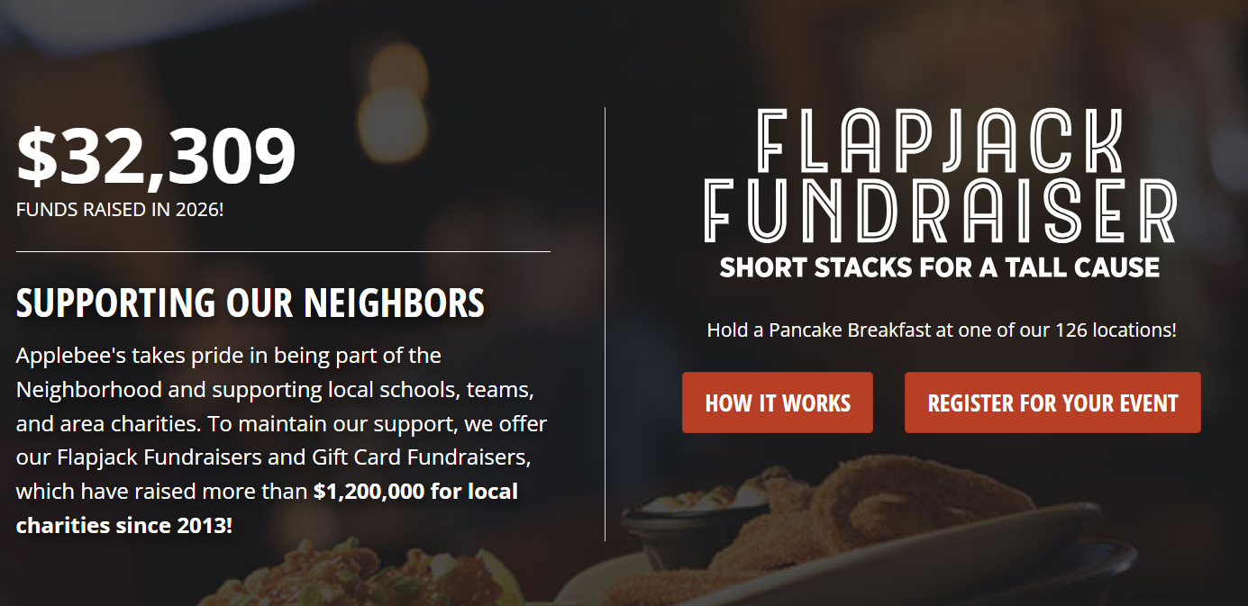 Applebee's Flapjack Fundraiser, for instance, lets groups take over the restaurant for a breakfast shift and keep most of the ticket revenue. But you don't need a chain; a local spot with a community-minded owner works just as well.