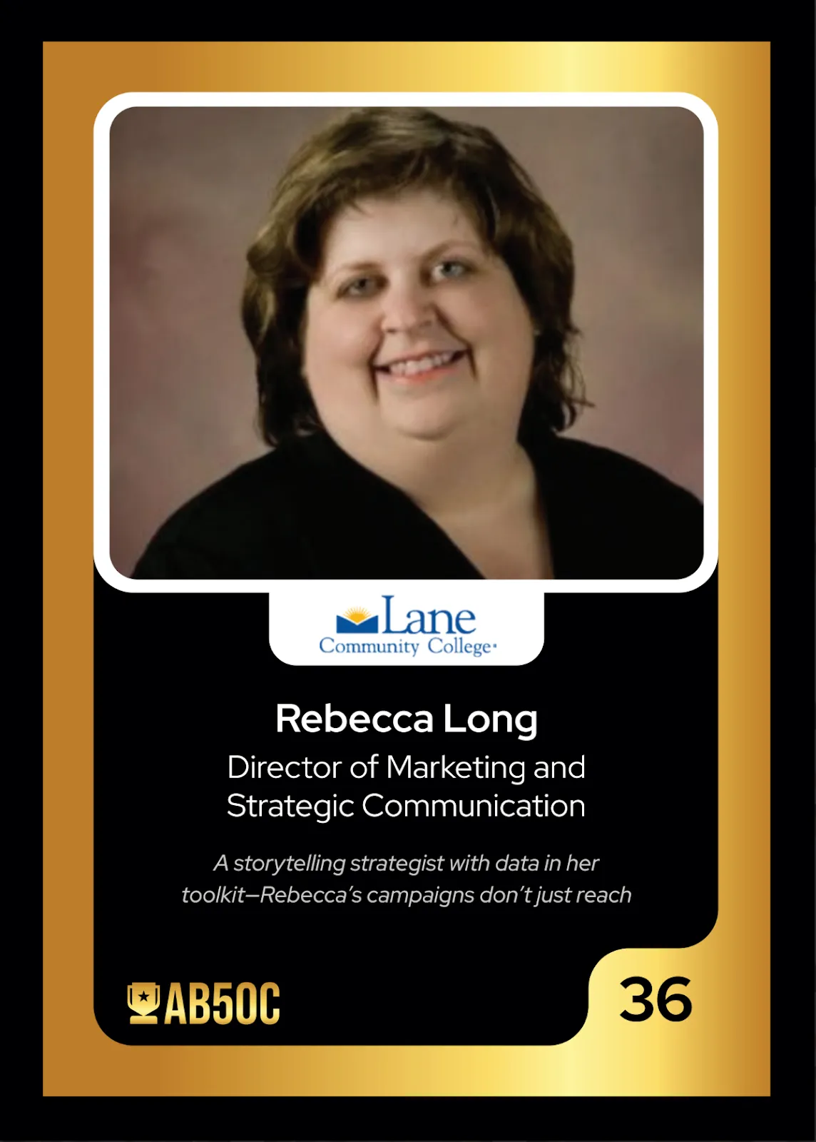 Under Rebecca’s leadership, the team now creates persona-based marketing strategies with clearly defined audiences, tailored messages, and measurable outcomes. Whether it’s a scholarship campaign for first-gen students or a targeted ad series promoting Lane’s aviation program, everything starts with data and ends with impact. She’s also built intentional bridges with the alumni and development offices to ensure that every story and appeal is relevant—not just another touchpoint, but a meaningful one.