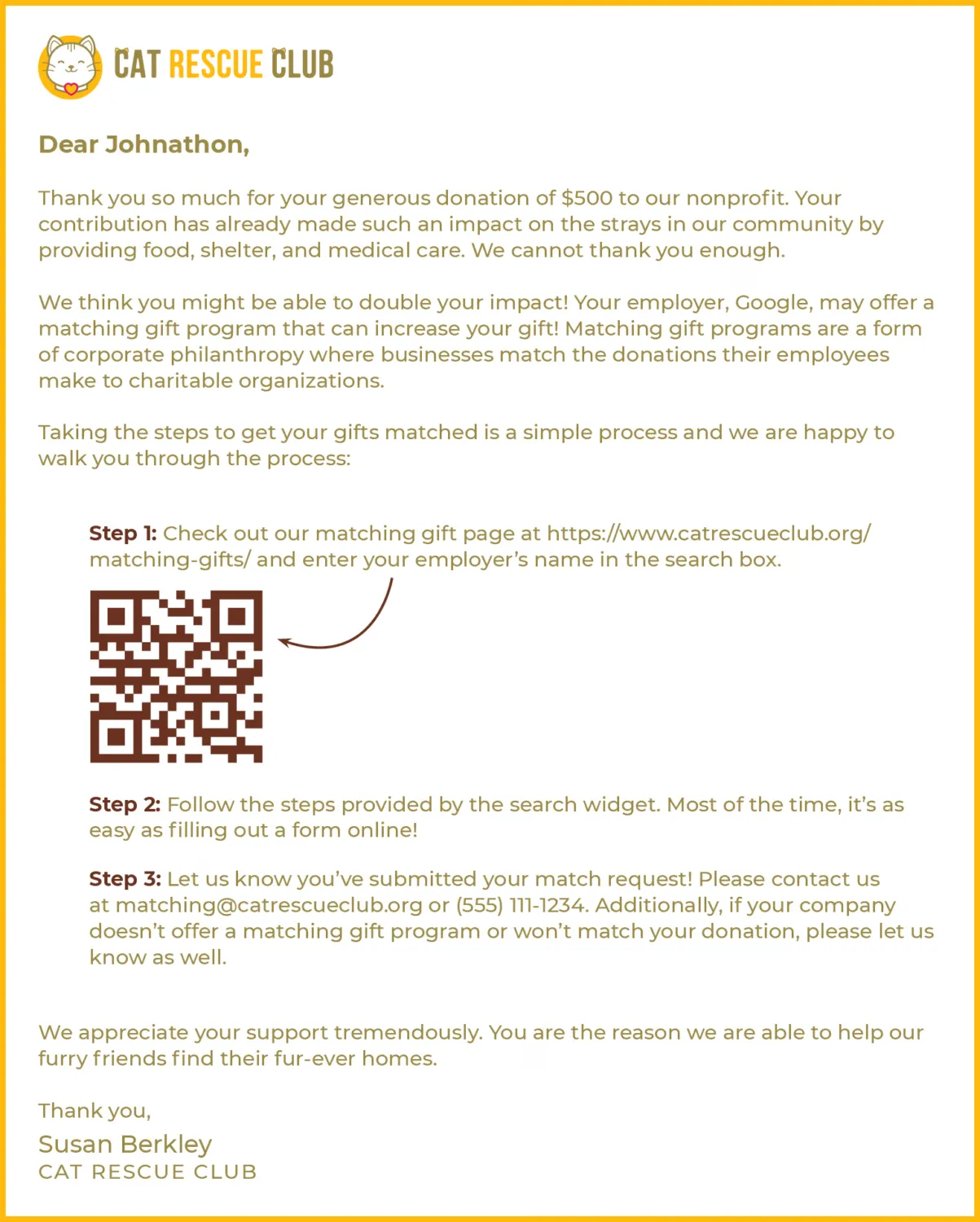 Place a scannable code on your donation reply cards or thank-you notes. Label it clearly with a call to action like, "Scan here to see if your company matches gifts."