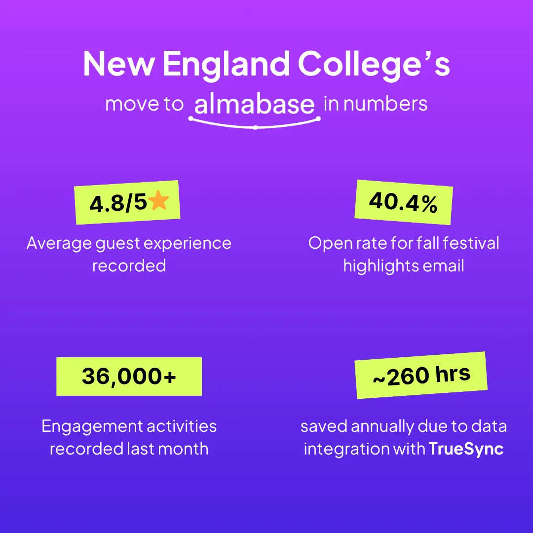 Anna Twombley’s team at New England College were iModules users before they adopted Almabase. They were facing a few persistent challenges such as: