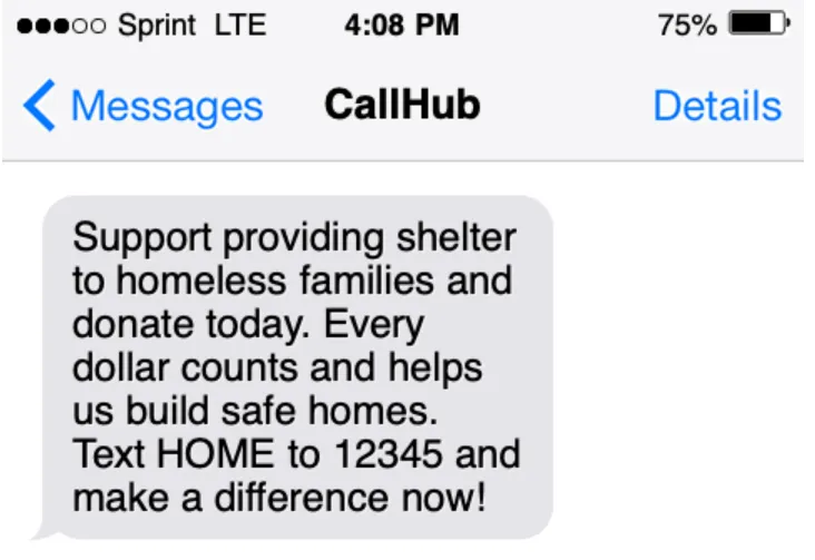 Hi [Name], it’s [Organization]. We’re $5,000 away from our goal for [specific program]. Can you chip in $25 today? [Link]