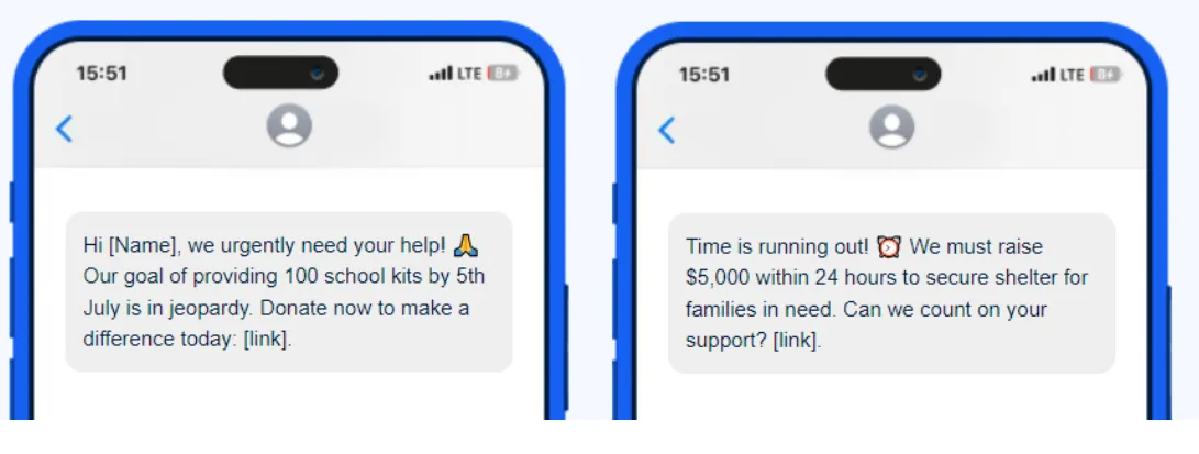 Urgency can be one of the strongest motivators for giving. When your donors know there’s a deadline or a goal within reach, they’re more likely to take action right away. Short, time-bound messages like these can help you make the most of that window of attention.