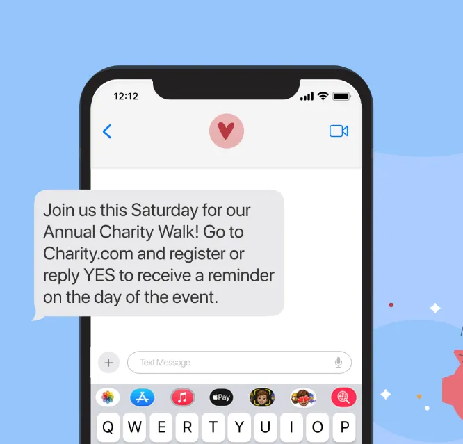 Events give you a chance to bring donors together, celebrate milestones, and raise additional support. A well-timed text can boost attendance and remind supporters why their presence, and their gifts, matter.