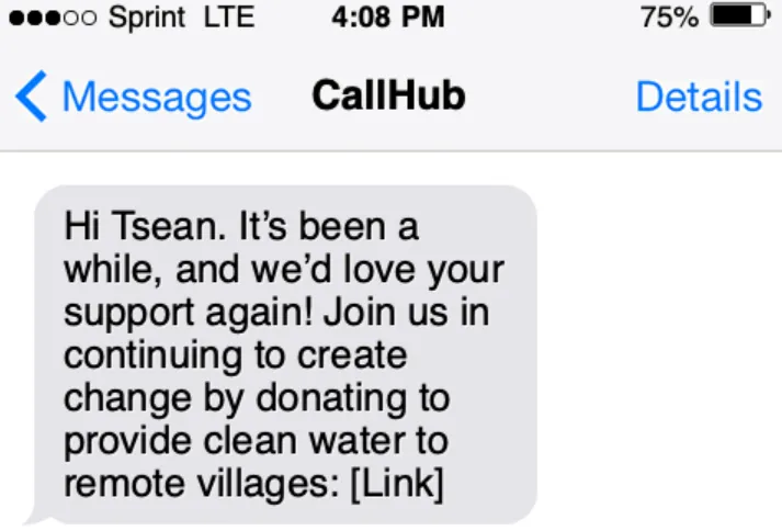 Your past donors are those who already believe in your mission. They just need a reminder of the difference they’ve made. Re-engagement texts work best when they sound personal, share a quick update, and show donors how their earlier support still creates impact.